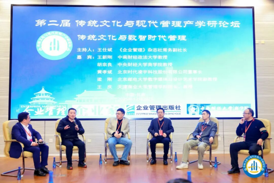 圆桌讨论环节聚焦“传统文化与数智时代管理”,中南财经政法大学教授王新刚,中央财经大学商学院教授胡宗良,北京时代凌宇科技股份有限公司董事长黄孝斌,北京邮电大学数字媒体与设计艺术学院副教授梁刚,天津商业大学管理学院院长、教授王庆等嘉宾,围绕“数智化时代应坚守哪些传统价值观”“企业弘扬优秀传统文化的有效路径”等议题进行了深入研讨。该环节由《企业管理》杂志社常务副社长王仕斌主持。